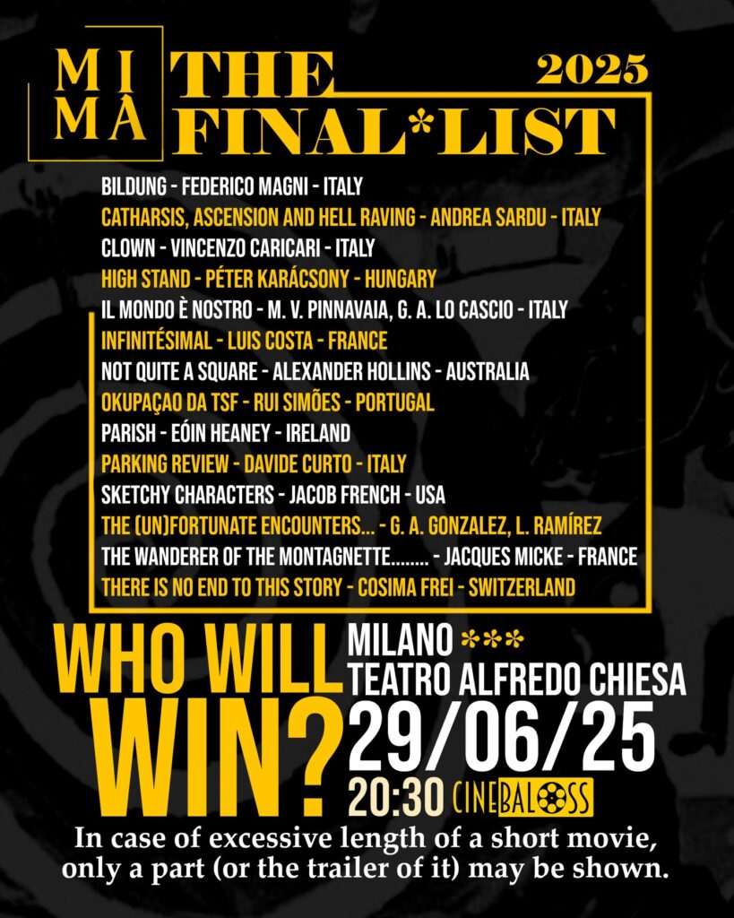 June 29, 8:30 pm | Milano, Teatro Alfredo Chiesa| via San Cristoforo 1.In case of excessive length of a short movie, only a part (or the trailer of it) may be shown.